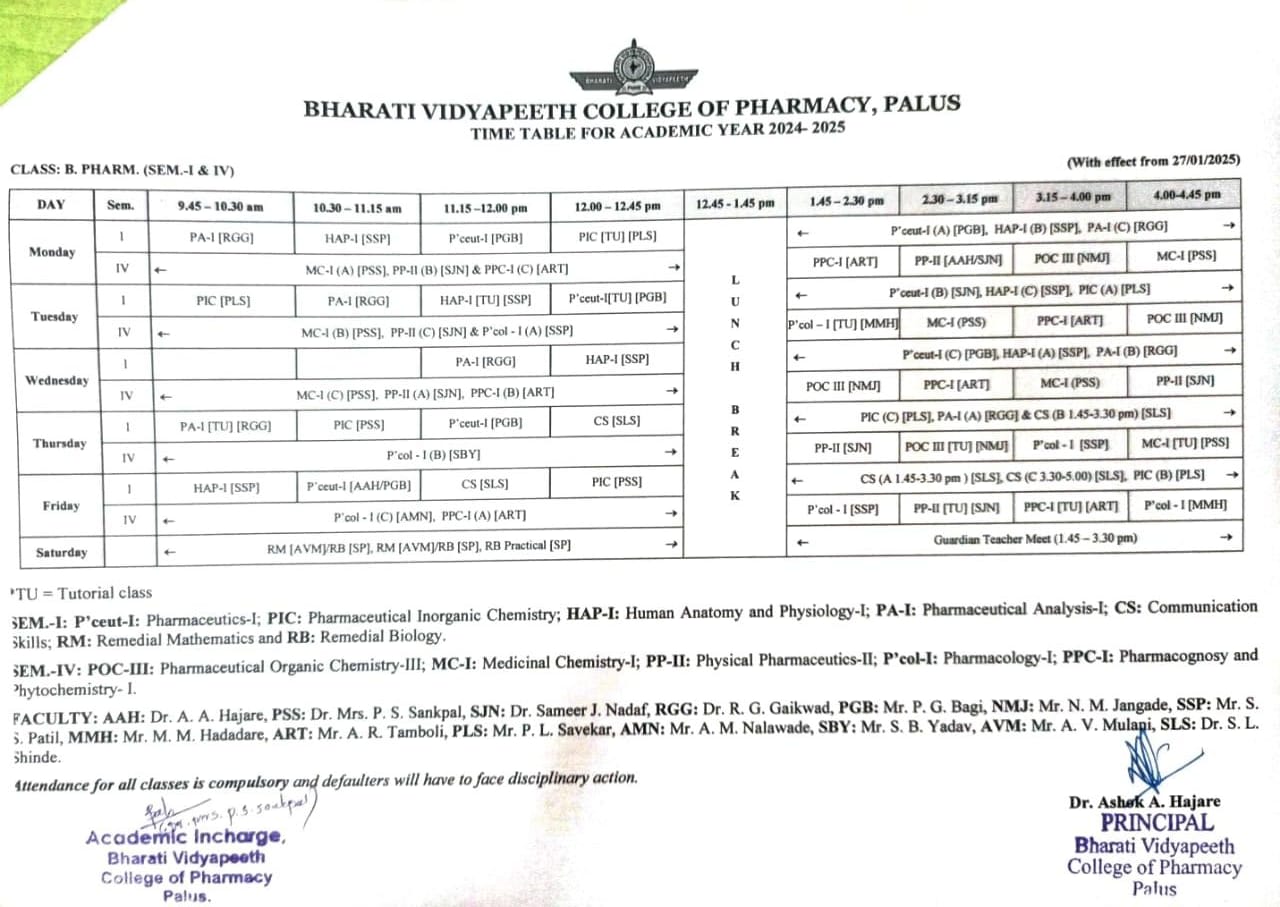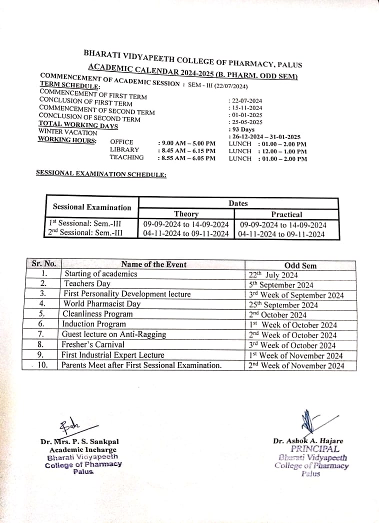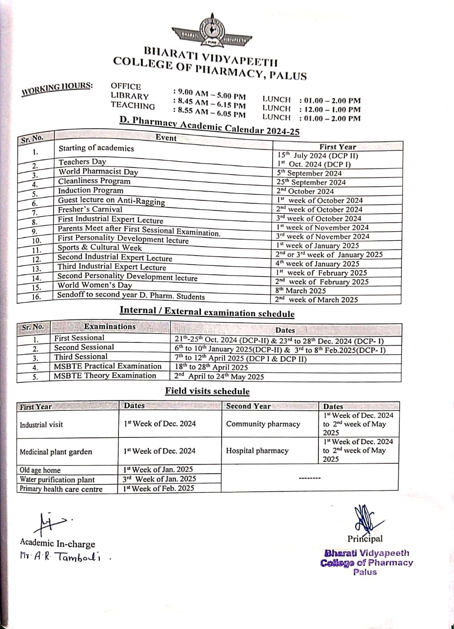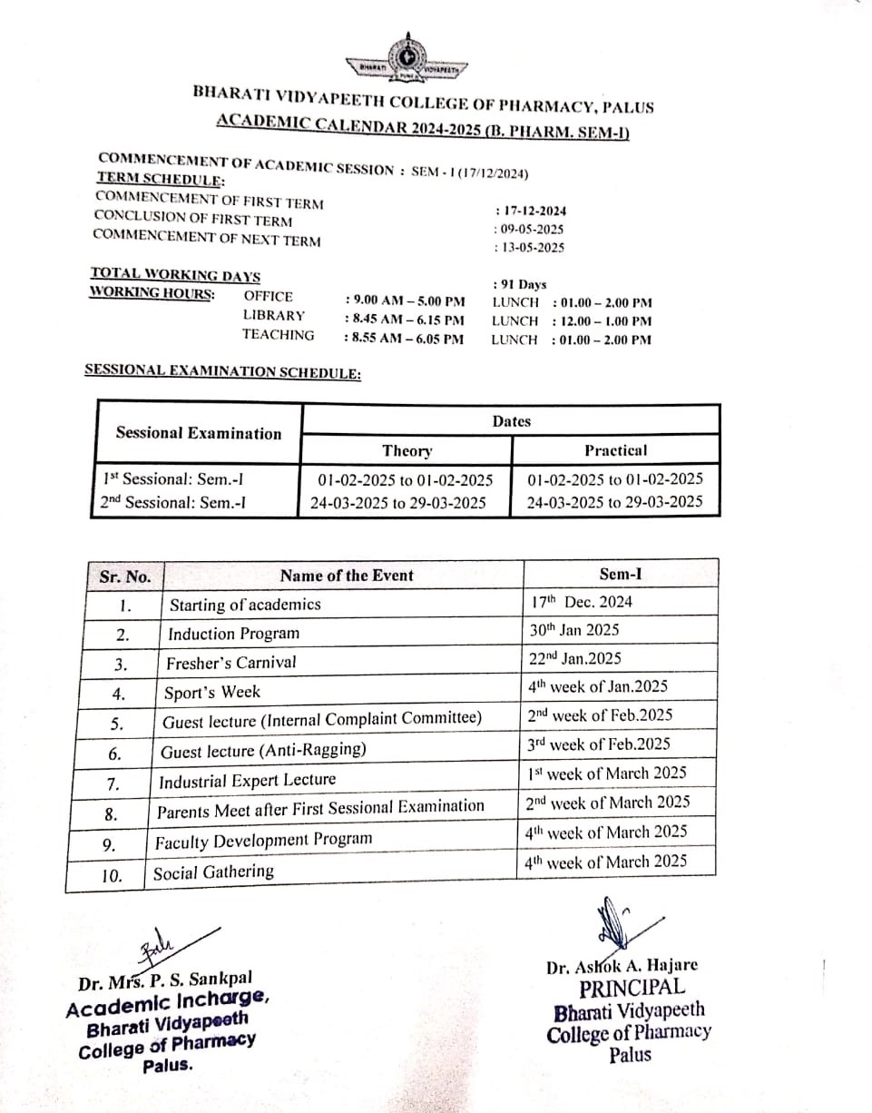 The college offers B. Pharm course (Four years Degree Course in Pharmacy), for the students who have passed XII standard examination in Science with not less than 45% marks, (40% for backward class candidates). A syllabus includes basic state-of-the-art and science to prepare Pharmaceutical Dosages and also covers the latest developments in the field of Pharmacy. Curriculum is finely mixed with theories and practical related with Basic Drug manufacturing and formulation & evaluation of Pharmaceutical Dosage Forms.